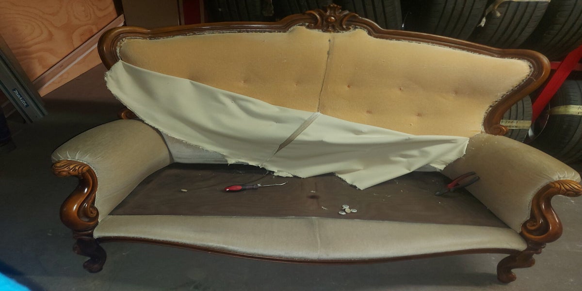 Wij hebben deze mooie vintage bank mogen bekleden voor een klant.
