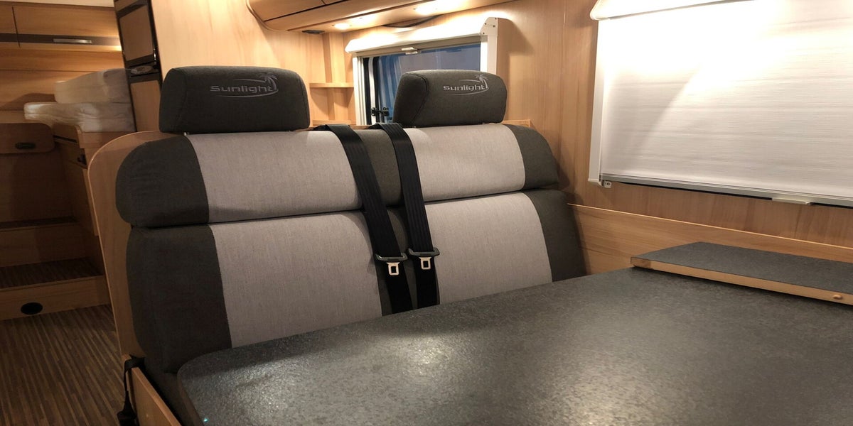 Mooie Sunlight camper bekleed met sunbrella stof, meteen een heel ander gezicht.