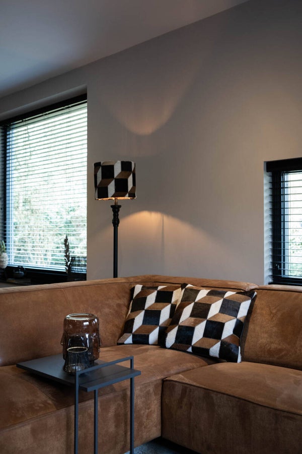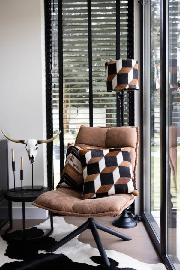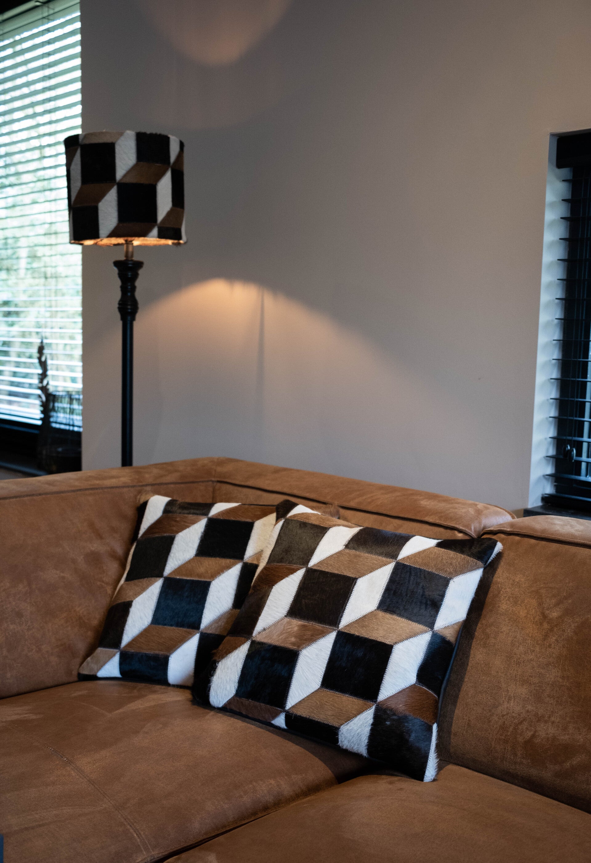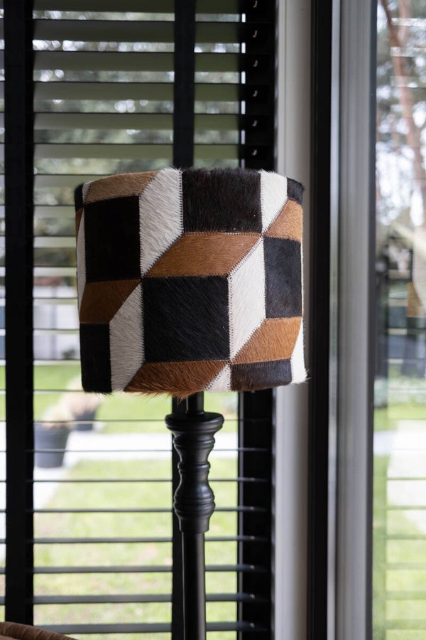 Laura Decoratie - koeienhuid lampenkap patchwork - echt leer - zwart, bruin, wit - Ø30x26cm